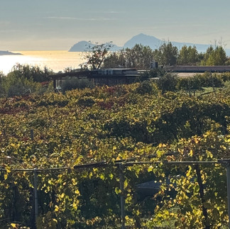 A visit to the Sorrentino winery, nestled in the foothills of Mount Vesuvius, is an unforgettable experience. On an unusually warm and sunny November day, we had the pleasure of exploring this gem. The panoramic views alone are worth the trip: the Sorrento Peninsula, the shimmering blue sea, and the iconic silhouette of Capri feel so close you could almost touch them. The air was filled with the fragrant scent of oranges and tangerines from nearby groves, mingling with the earthy aroma of the vineyards, now dressed in their autumn palette of reddish yellows and deep browns. A few clusters of grapes still hung on the vines, which we initially thought were destined for late-harvest sweet wines. However, Carmelo, our exceptional guide, explained that these were simply grapes left behind during the main harvest because they hadn’t fully ripened.